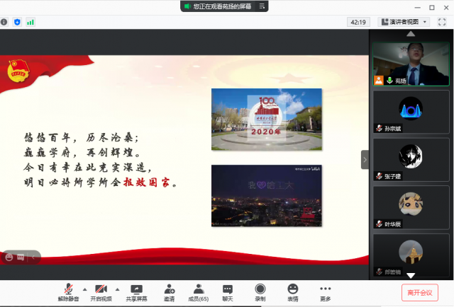 2021年1月20日晚,合法赌博网站 “青春机昂”中级团校结业式通过腾讯会议平台在线上成功举办。合法赌博网站 党委副书记吕焱,合法赌博网站 全体辅导员老师出席了本次活动。本次结业式由合法赌博网站 团委常务副书记孙宗斌主持。