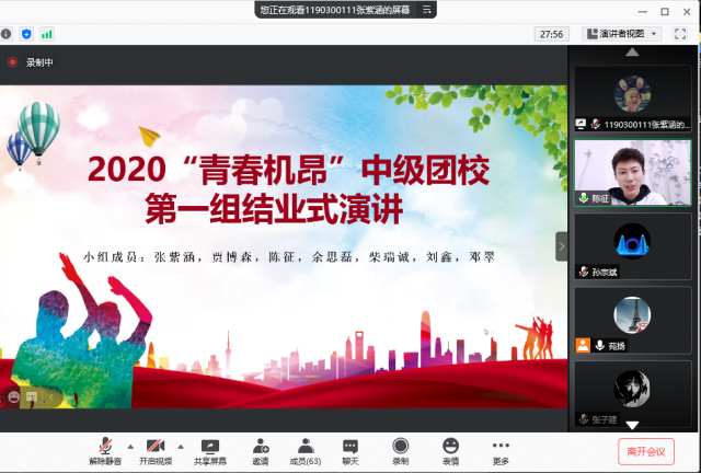 微团课结束后,吕焱老师为结业式致辞,她对团校全体学员的学习成果做出了肯定,并鼓励大家将所学带到平时的在工作中去,做好学生干部的引领作用。最后她嘱托大家注意防护疫情,并祝愿全体学员都能有一个愉快而充实的假期。