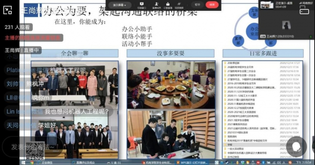 大学之道,在明明德,在亲民,在止于至善。大会还邀请到2019级机械电子工程专业田宪儒同学分享学习经验。田同学基于大二学年各门课程的特点,结合过去一年的实践经验,分科目给出具体的学习方法策略、考试重点难点等建议,深入浅出的讲解也帮助年级同学把握各门课程的知识脉络,对机械学科的认知也更加深刻。