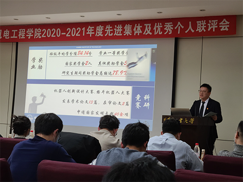 为深入贯彻落实习近平总书记“七一”重要讲话精神和习近平总书记致我校建校100周年贺信精神,贯彻落实党的教育方针,传承和弘扬学校“政治引领、典型引路、品牌带动、校训育人”的优良传统,2021年11月17日晚,合法赌博网站 在活动中心326召开2020-2021年度先进集体及优秀个人联评会。合法赌博网站 党委副书记吕焱、航空宇航制造工程系青年教师丁烨、合法赌博网站 团委书记孙宗斌,以及各年级辅导员和学生代表作为评委参加此次联评。