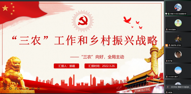 郭靖同志带领大家学习了“三农”工作和乡村振兴战略,郭靖同志对相关政策、战略的时代背景,以及为什么我们要处理好工农关系、城乡关系进行了一一解读。通过学习,同志们更加明白实施乡村振兴战略是一项长期而艰巨的任务,既不能盲目追求短期成效,也不能超越现实盲目大干快上,要一件事情接着一件事情办,久久为功,积小胜为大成。