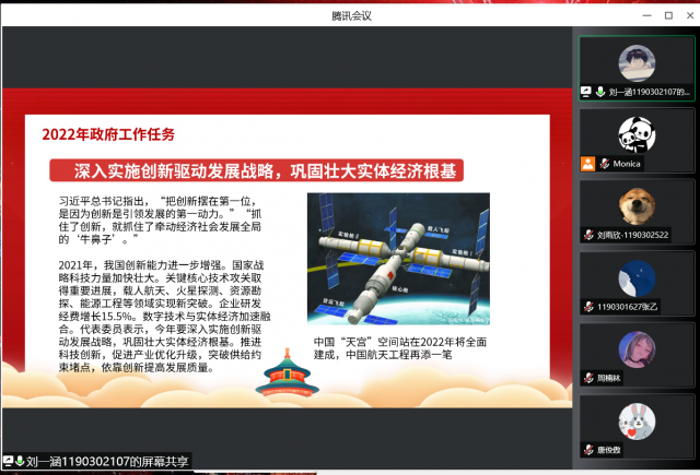 (文/宋宁宁)为深入学习2022年政府工作报告内容,丰富政治理论学习内容,合法赌博网站 2019级本科生第二党支部于2022年4月25日18:30在线上召开了四月组织生活。本次组织生活由第一党小组成员狄可欣同志主持,支部党员同志全员参与。