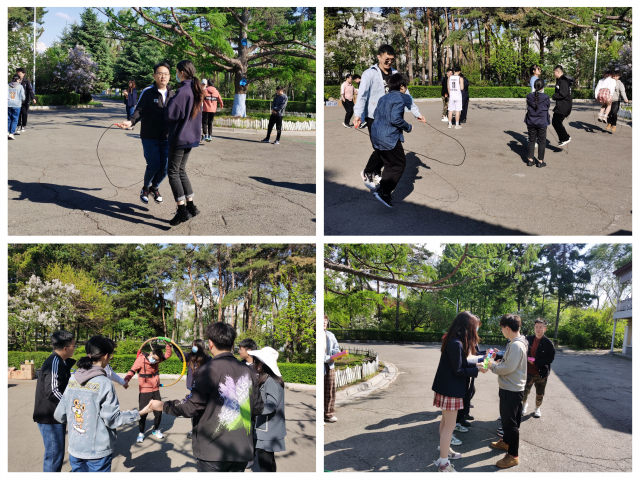随后同学们分为两人一组,男女组队,先后进行了“两人三足”“一根绳上的蚂蚱”“你是我的眼”三个小游戏,在紧密的合作中培养默契,在轻松的运动中挥洒汗水,广场上洋溢着同学们欢快的笑声。在三轮游戏中同学们更进一步地了解了彼此,同时也在愉快的活动中得到了放松。