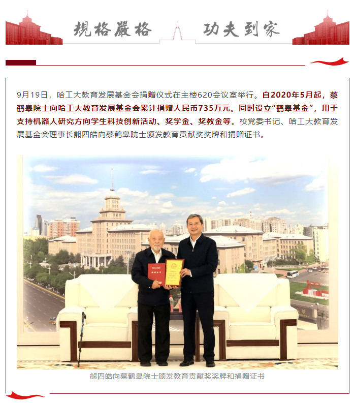 捐赠735万元!“90后”院士蔡鹤皋助力哈工大新百年发展建设
