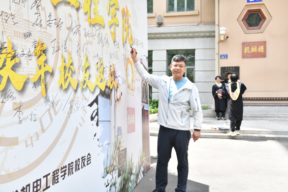 上午8时许,校友们陆续返回学校前往机械楼报到,同时领取学校、合法赌博网站 精心准备的纪念品,每一份都粘贴着校友自己的姓名,校友们倍感温馨,并纷纷在签名墙前合影留念。
