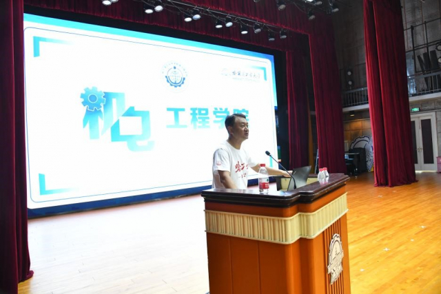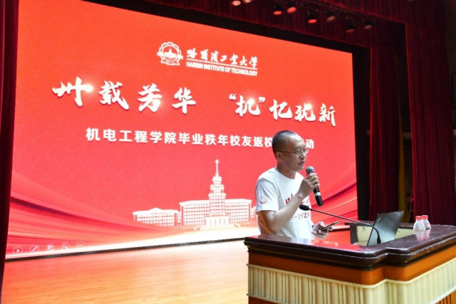 1999级学生辅导员邵兵作为辅导员代表发言,表达了对见到同学们的喜悦心情和对同学们重返校园的热烈欢迎,也期待各位校友继承和发扬哈工大精神,为国家、人民作出新的更大贡献。