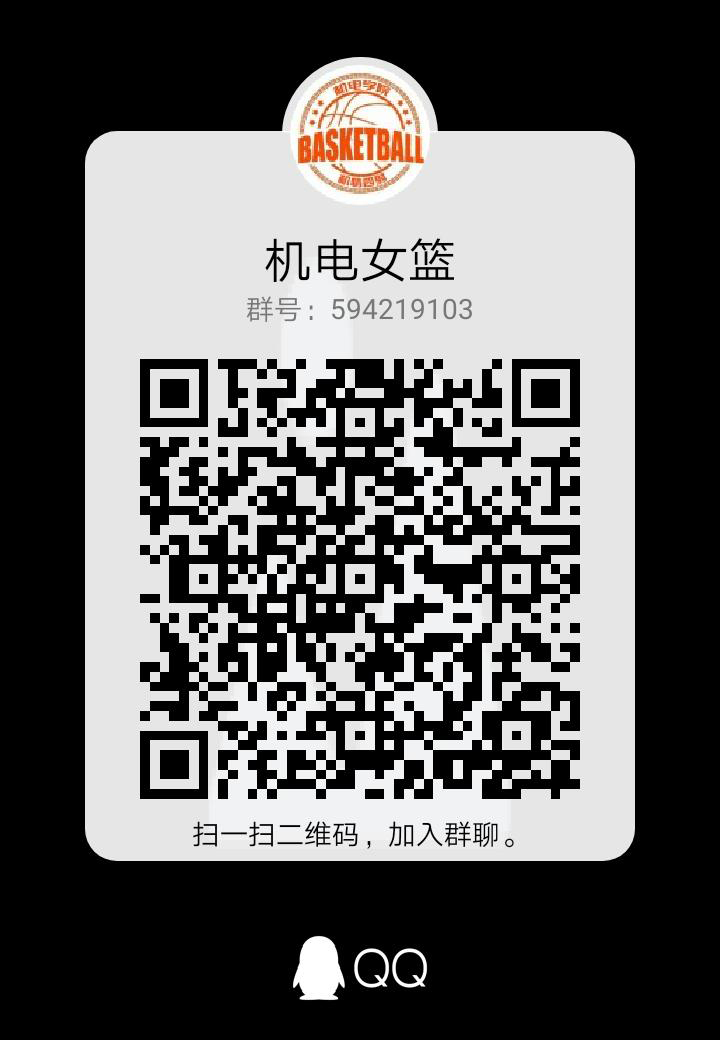 机电篮球的未来,需要热爱篮球的你!我们相信机电女生虽少,但不缺篮球爱好者,不管你是大一新生,还是高年级学姐,机电女篮永远欢迎你!不论你是篮球小白,还是篮球大神,只要你有一颗热爱篮球的心,机电女篮永远欢迎你!随着俱乐部规模不断扩大,明年AUBA定能再创佳绩!扫描下方二维码,加入机电女篮QQ群吧!