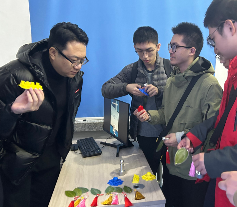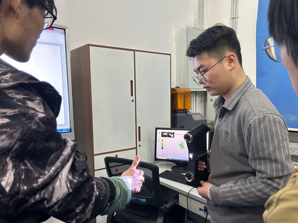 在逆向工程与增材制造训练室,吕建峰老师向同学们展示了逆向工程扫描和重建的操作过程,同学们对这项能够将虚拟设计转化为实体产品的技术表现出浓厚兴趣。