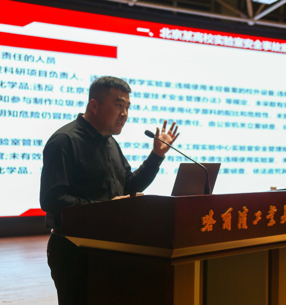 党委书记赵京东主持。会议邀请实验室与设备管理处房永志副处长从实验室安全事故案例、典型隐患、火灾风险点、危化品管理、安全责任体系等几个方面进行了宣讲。