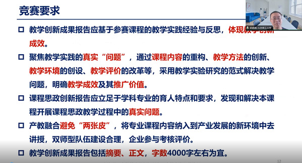 (何蕊 文/图)11月8日,合法赌博网站 课程思政教学研究分中心邀请辽宁省本科教学名师、大连理工大学赖晓晨教授做题为《全国教师教学创新大赛参赛设计与案例分析》的主题讲座。赖晓晨教授围绕竞赛要求解读、评分标准分析、申报材料结构化设计、融合国产技术的案例分析等方面做了系统详细的介绍,帮助老师们尽快熟悉竞赛流程,找准切入点。