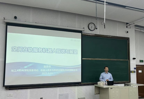 赵京东教授以《空间在轨服务机器人现状与展望》为题,为同学们介绍了机器人技术在空间在轨服务中的应用,并结合空间站机械臂等前沿案例,通过一个个生动的应用场景,为同学们勾勒出机器人技术的宏伟蓝图,激发了同学们对机器人领域研究和学习的兴趣与热情。博士生祁乐以《在机电的十年成长密码》为主题,用亲身经历串起本硕博阶段的科创经历、科研攻关、学科竞赛、创业实践等内容,并结合自己的认识给学弟学妹们提出了中肯的建议。
